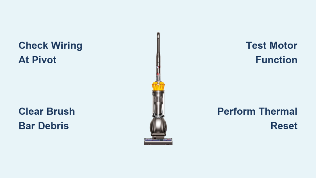 Your Dyson upright vacuum suddenly stops grabbing dirt, leaving dust bunnies and crumbs behind while the motor hums normally. This