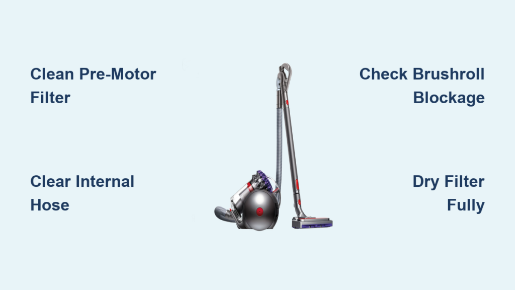 When your vacuum vomits dirt instead of collecting it, the problem isn’t weak suction—it’s interrupted airflow. That spinning brushroll creates mechanical agitation to lift debris, but without proper suction behind it, the vacuum becomes a dirt disperser. This guide targets the three most critical failure points causing your Dyson Big Ball Animal not picking up: the clogged pre-motor filter (responsible for 70% of cases), internal hose blockages (the silent killer), and compromised seals. Follow this exact sequence to eliminate suction killers before they trigger thermal shutdowns or permanent motor damage.